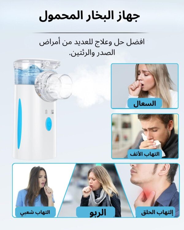 جهاز البخار المحمول mesh nebulizer وهو جهاز تبخير جديد بتصميم وتقنية تتناسب مع الكبار والأطفال. إن كنت تعاني أحد نوبات ضيق التنفس بسبب البرد والتهاب الحلق والسعال والتهاب الحنجرة والتهاب الشعب الهوائية والالتهاب الرئوي والربو؟ فلا تقلق. مع جهاز البخار المحمول أنت فى أمان مهما كان مكانك أو الوقت التي تحدث فى المشكلة.